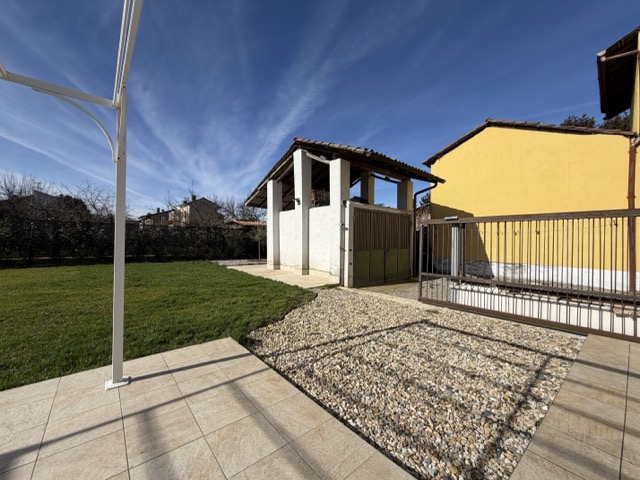In un contesto tranquillo e riservato a Chignolo Po, proponiamo in vendita un’elegante abitazione indipendente recentemente ristrutturata, ideale per chi desidera spazi ben distribuiti, moderni e la privacy di una soluzione singola. L’ingresso al piano terra accoglie in un’ampia e luminosa zona giorno open space, composta da soggiorno, sala da pranzo e cucina creando un ambiente arioso e conviviale, perfetto per la vita quotidiana e per ricevere ospiti. La sala da pranzo affaccia direttamente sul giardino, garantendo un piacevole affaccio sul verde e una continuità tra interno ed esterno. Completano il piano un pratico disimpegno e un bagno. Una comoda scala conduce al piano superiore, dove si sviluppa la zona notte. Qui troviamo una spaziosa camera matrimoniale, due camerette versatili, ideali come camere per bambini, studio o stanza hobby, di cui una con accesso diretto al balcone. Il piano è servito da un secondo ed ampio bagno e da un disimpegno. L’esterno rappresenta uno dei punti di forza della proprietà: l’area è ampia e ben organizzata, in parte adibita a giardino e in parte pavimentata, ideale per pranzi e cene all’aperto, per creare una zona living esterna o per momenti in totale riservatezza. L’abitazione è stata oggetto di ristrutturazione nel 2018 ed è dotata di doppi vetri, caldaia a condensazione, porta blindata, sistema di allarme e impianto di aria condizionata, garantendo comfort abitativo, sicurezza ed efficienza energetica. Completano la proprietà un comodo box auto e un cascinale con ulteriore deposito e sovrastante legnaia. Una soluzione pronta da vivere, che unisce indipendenza, funzionalità e qualità delle finiture, perfetta per chi è alla ricerca di una casa accogliente e moderna. Contattaci per ulteriori informazioni e/o fissare un appuntamento in loco, siamo disponibili al numero 0371 675308 email info@maisonbanina.it.