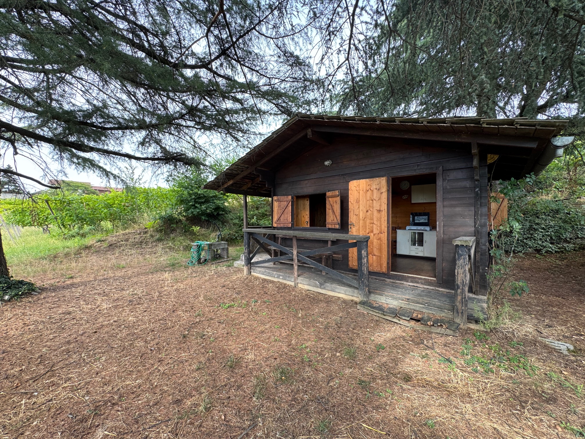 LA TERRAZZA SUI FILARI Tra i dolci profili delle colline Banine, là dove lo sguardo si perde sull’Oltrepò Pavese, si apre un luogo che racchiude la magia della natura e il calore dell’accoglienza. In questo angolo di quiete sorge la proprietà che vi proponiamo in vendita: uno chalet in legno, una vera gemma nascosta, che profuma di intimità e serenità. Lo chalet è immerso tra i filari del vigneto di proprietà, avvolto da un silenzio che sa di pace e da un paesaggio che cambia colore a ogni stagione. Varcata la sua soglia, si accede a uno spiazzo pianeggiante che si apre come una terrazza naturale sui vigneti, un palcoscenico privilegiato da cui ammirare la bellezza autentica delle colline e lasciarsi cullare dal ritmo lento della campagna. Il terreno, di circa sei pertiche milanesi, custodisce l’essenza di un rifugio autentico, già servito da acqua potabile e coltivato a vigneto produttivo, pronto ad accogliere chi desidera ritrovare il contatto con la terra e assaporare momenti sospesi nel tempo. Non è solo un terreno con uno chalet: è un invito a vivere l’emozione di un’oasi di tranquillità, dove ogni tramonto diventa uno spettacolo e ogni giornata si trasforma in un ricordo da condividere con le persone care e custodire. Contattaci per ulteriori informazioni e/o fissare una visita in loco, siamo disponibili al numero: 0371 675308 - mail: info@maisonbanina.it